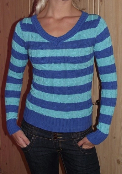 Prodávám krásný modrý svetřík, protože mi je bohužel dost na těsno a necítím se v něm. Nikdy jsem ho na sobě neměla, pouze jsem ho zkoušela, takže úplně nový. Velikost XS. Cena 189,- + pošta.