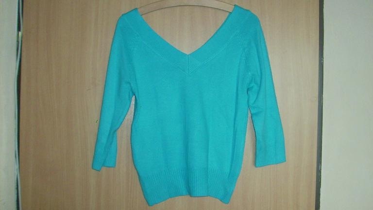 Svetr je více nošený, ale ještě poslouží. Jsou na zadní straně trochu vidět žmolky, ale podlě mě se dají odstranit. Nevím, nezkoušela jsem to. Míry: délka 55 cm, ramena 38 cm, prsa 38 cm. Cena 90,- + poštovné