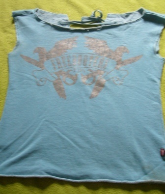 0Modrý top Diesel kupovaný v USA. Nošený, bez poškození, zachovalý. Ležérní ale dráždivý střih. Odhalená záda, zavazování na šňůrku. Délka 52, šířka 40. Cena 230,- včetně pošty.