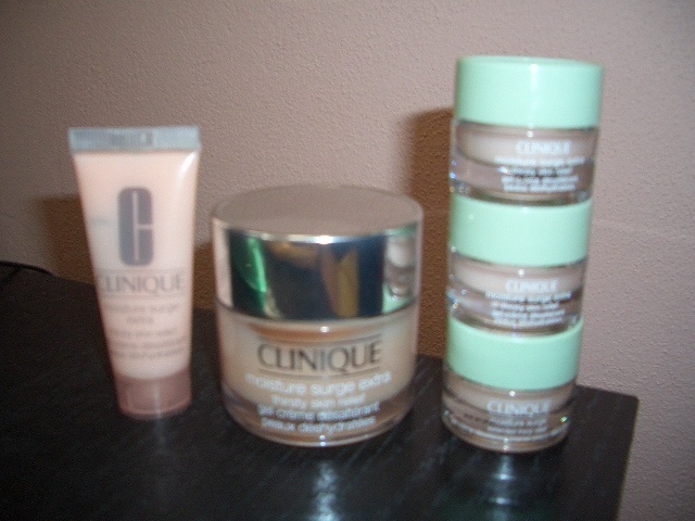 přecházím na jinou kosmetiku, nabízím moje nasyslené zásoby Moisture surge gel-krému. Velký použitý kelímek o původním obsahu 50ml, použitý, zbývá 80% pravda, je otevřený od prosince 2009 a barvu má již maličko jinou než ty neotevřené