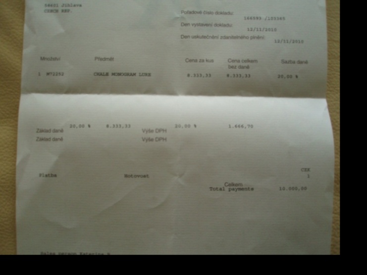 PC 10 000,-. Mnou kupovaná 12.11., ani jednou vzatá, doklad z Pařížské samozřejmostí. Zájemcům mohu zaslat více foto.