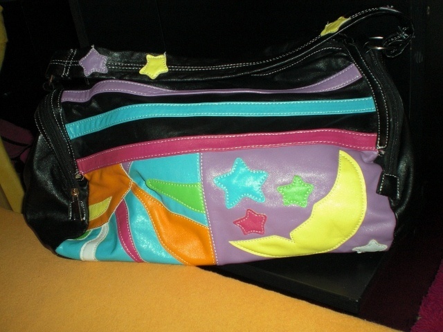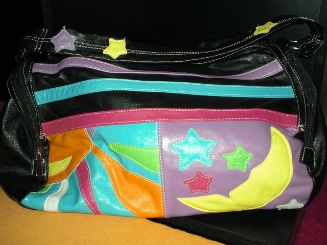 0Nabízím novou originální barevnou kabelku - základ je černá barva. Zapínání na zip, uvnitř malá kapsička na zip. Dvě uši - ideální do školy nebo do práce. Poštovné a balné 90 Kč.