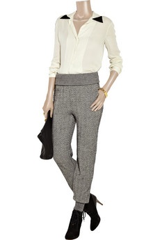 Jinak mám "tchyni" ve věku 45. Moc pěkná baba. Nosí právě hodně volnější halenky styl Zara, doplňky jako šály, výraznější náhrdelníky, náramky. Na jaře si pořídila pěknej kabátek s tříčtvrtečníma rukáváma a do áčka. K tomu baleríny. Jediný co bych jí vytkla jsou slimky, nemá až tak štíhlý a rovný nohy a víc by jí padly dobře střižený "roury".