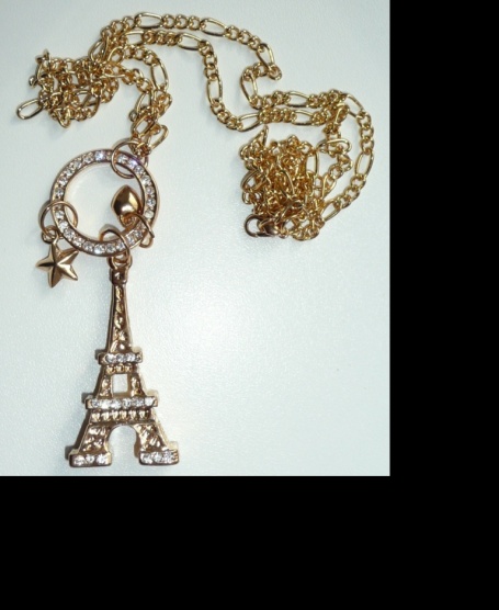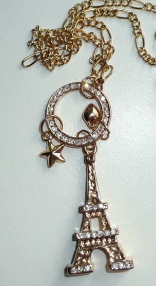 Nový náhrdelník s eiffelovkou, posetý Swarovskiho kamínky, krásně třpytivý. Materiál rhodiovaný kov slitina, bez niklu,hypoalergenní, nečerná. Nový v krabičce nenošený.