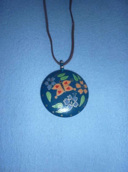 0Prodám tento náhrdelník na šňůrce s malovaným dřevěným kolečkem. Kupováno v Takku. Cena 100Kč včetně pošty.