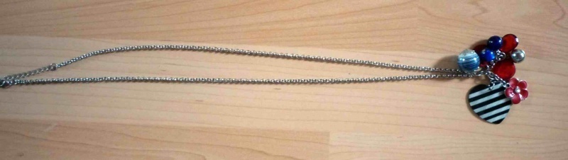 Náhrdelník se stříbrným řetízkem a červeno modrými přívěsky