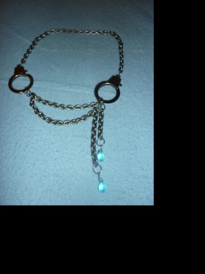0Prodám tento krásný doplněk na krk. Náhrdelník se zapíná tak, že se zacvakává pouto. Dále obsahuje dvě visící tyrkysové "kapičky" Cena 100Kč, případně výměna.