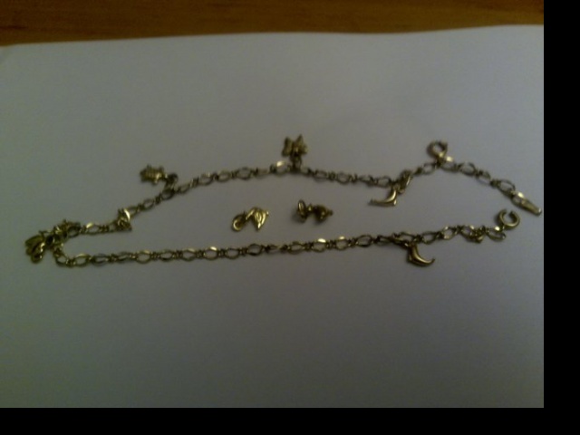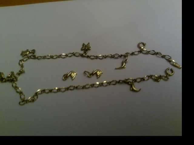 Řetízek nákotník délka 33cm,7 přívěsků,2zapínání(ale 1 nejde)Je to (kdo zná) francouzské zlato,takže silně zlaceno.Cena 270+40pošt.