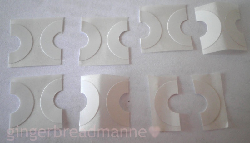 Nejsou primárně určeny na nehty, ale na zpevnění dírek v papíru do karis bloku. Jsou to kolečka, která při použití na nehty přestřihneš na půlky.