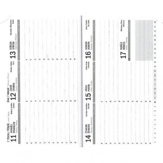 Ahoj holky, mám diář Filofax velikosti Pocket (A7), která mi co se skladnosti týče vyhovuje, ale na psaní rychlých poznámek do diáře na jeho pravou stranu (čili na Po, Út a Stř) je dost nepraktické, protože mi jako pravačce zavazí ta kroužková vazba uprostřed. Vzhledem k tomu, že se blíží rok 2014, tak bych si chtěla pořídit novou náplň a chtěla bych sehnat něco takové jako posílám na obrázku, abych diář měla otočený při psaní a tolik mi to nezavazelo. Nevíte, kde bych mohla nějakou univerzální náplň pořídit? Na internetu jsem v podstatě nic nenašla, prošla jsem náplně od Filofax, ADK i Herlitz, tak třeba někdo znáte ještě jinou značku.