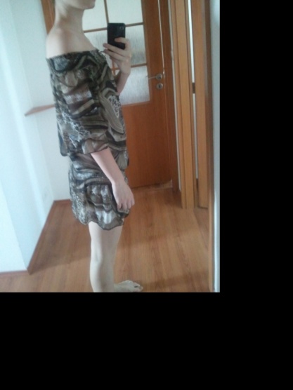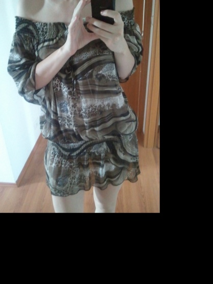 Zajímavá nařasená tunika, lze nosit jako na fotce, nebo vytažené na ramenou. Tuhle tuniku jsem na sobě neměla ani jednou. Pro mne příliš odvážná. Délka cca 78 cm. Univerzální velikost. Prodávám za 350 vč. pošty.
