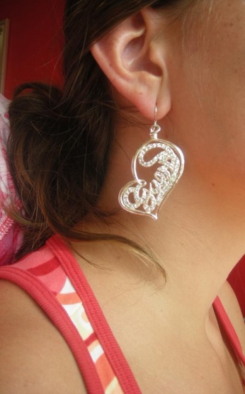 Prodám náušnice s nápisem Guess v srdíčku. Nápis vykládaný kamínky- žadný nechybí. Jedna náušnice je malinko tmavší od nošení. 250 vč. pošty.