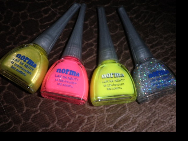 Na fotce je to ten 3. zleva, je opravdu krásně výrazný, ale bohužel se mi to nepodařilo moc dobře zachytit na fotce. Neonové laky schnou matně - takže je vhodné přes něj použít ještě nějaký nadlak.