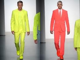No tam je leda sako barvy mint (křiklavá mentolová, tyrkysová) a sako výrazné žluté - ale ne neonové.