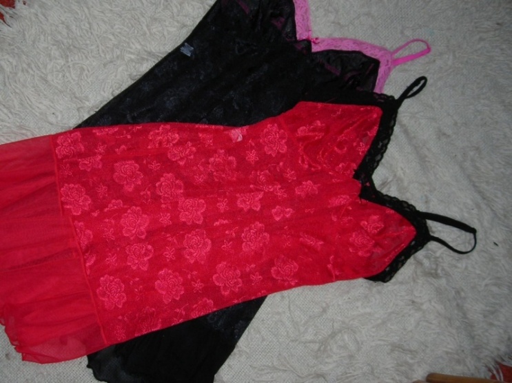 Červená košilka s černým lemováním a černá košilka s růžovým lemováním.