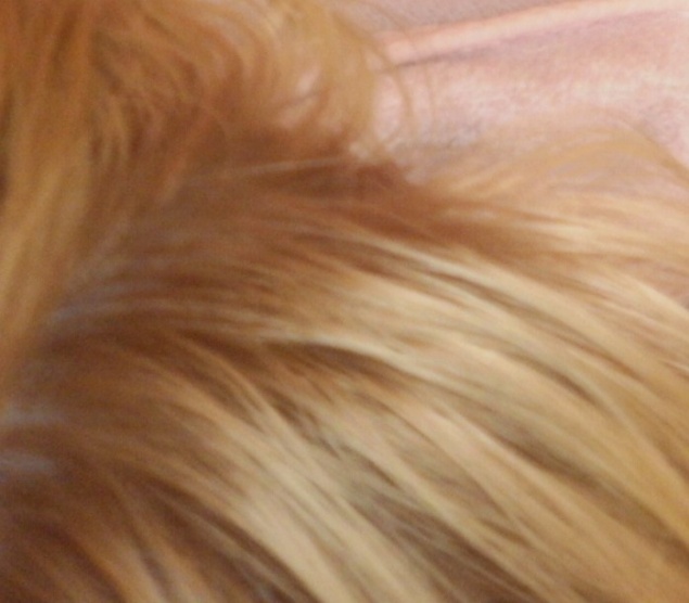 ..na obarvených vlasech nevidim vubec žadny rozdil krom toho, že jsou strašne vysušený jináč odrost je pěkně zlato-rezavej..