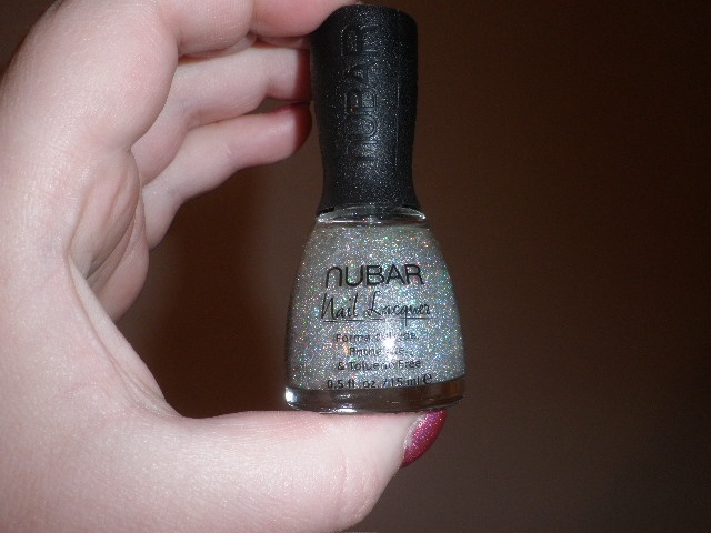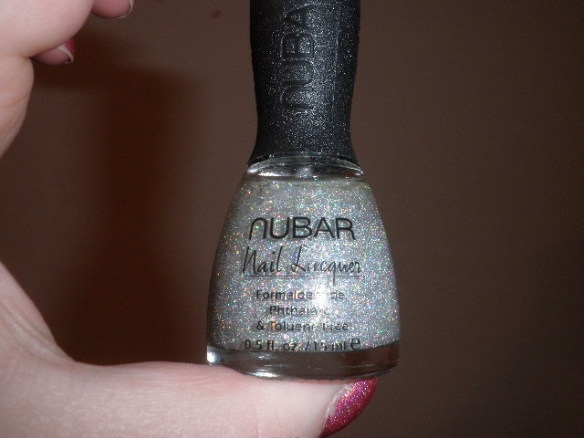 0Nubar - Hologram glitter. Jednou použitý ve dvou vrstvách, aktuální stav viz foto, hází nádherné holografické odlesky, mám ještě jeden, tak posílám dále.