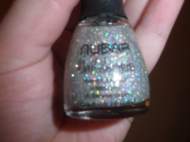 Nubar - Hologram glitter. Jednou použitý ve dvou vrstvách, aktuální stav viz foto, hází nádherné holografické odlesky, mám ještě jeden, tak posílám dále.