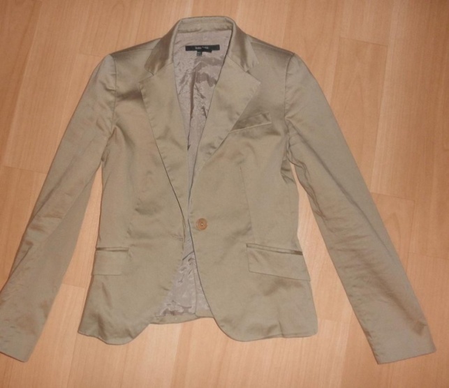 Krásné sáčko nádech jemně doleskla,ale přitom je klasicky matné,moc hezky sedí já mám XS a je mi ale myslím že i na S by sedlo.Míry dodám na požádání.Foto na postavě fotnu za normálního světla fotím v zrcadle a nejde to vidět,ale sedí opravdu hezky,na rukávech knoflíčky,vzadu rozparek je projmuté.Bylo jednou v čistírně.Nošeno na pohovory občasně.