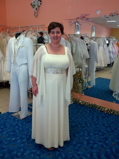 Určitě zajdi do salonu a vhodné šaty najdeš. Velikost 40 přece není nic velkého a fakt maji šaty na jakýkoliv druh postavy