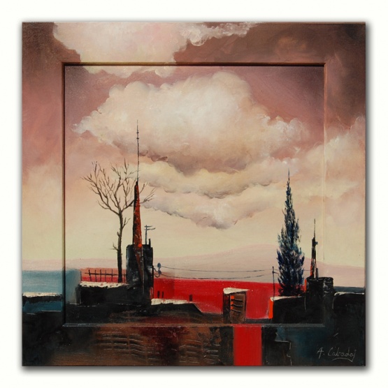 na červenou zeď se hodí cernobílý obraz s nějakou zlatou aplikací, podobný jsem kdysi malovala, škoda že už nemám nikde fotku pro inspiraci