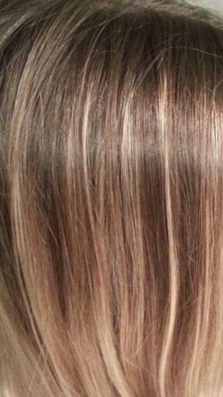 dala mi melír 6.1 a příště asi pujdu celou hlavu tou 6.1 (nebo i tmavší 5.1) jelikož to mám pořád celkem světlé. Dala si práci a udělala ho pěkně husťoučkej, takže je to skoro jako by ztmavila celé vlasy