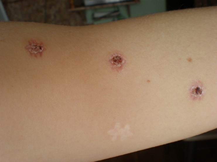 takže posuďte sami..podle mého po vyříznutí zůstanou jizvy vždy ( zaleží samozřejmě na místě), ale okem budou vždycky viditelné.na tváři bych proto doporučovala laser..ty 3 čerstvé jizvy samozřejmě neberu ještě za zhojené, jsou tam ještě strupy, které se udělaly po vyndání stehů..a abych řekla pravdu, tak jsem z toho celkem neštastná Na fotce je vidět i bílá jizva, kterou mám už 6 let a co si pamatuju, tak určitě se hojila lépe než ty tři. a jizva je poměrně velká a viditelná..hlavně v létě, kdy mi to při opalovaní zčervená a pak vznikne zas kontrast s opáleným tělem a bílou jizvou. Takže si neumím představit, jak budou vypadat ty ostatní. Bude to vypadat, jak bych měla na ruce vysázenou plantáž květin..jinak mi to dělal jeden a ten samý doktor i stejným způsobem..ale bereme v potaz, že je to přece jen ruka, se kterou se pořád hýbe a né tvář..