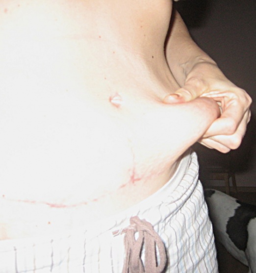 tak jsem si zkoušela v sedě zmáčnout kuži jako Ty a tolik jako Ty jí tam teda nemám ... určitě Ti mohl té kůže vzít víc.