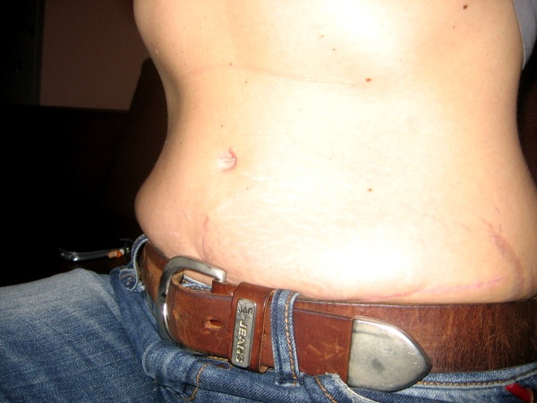 doktor je spokojenej...prej mám ještě počkat a řízl by jen tu jizvičku kolmo směrem k pupíku...tak to tedy nechci...chtěla bych to stáhnout celé dolů...hodím vám sem fotku ještě v gatích