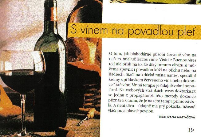 hele co jsem našla--že bych to víno používala jinak než do sebe? myslíte že na tom něco je?Bylo to včasopise co se zabývá altrnativní přírodní léčbou.