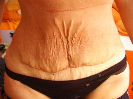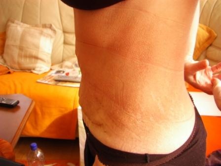 To si pište, že jsem z toho hotová, možná to trochu bylo zmačkané tím, že jsem si zrovna sundala ten pás, ale ty strie tam zůstaly. Je to hodně z blízka. Právě v těch striích byla ta kýla velikosti skoro pomeranče a na stažení níže už ta kůže nebyla. Dnes mi ještě začala ta jizva mokvat. V leže je to pěkné, možná se to trochu vypne, byla jsem na kožním a doktorka říkala ať moc nestlačuji aby to nepovolila napsala mi mastičky na hojení a na jizvu. Tak budu masírovat málo a ne jako mi řekl dr. hodně, to už bych nerozdýchla, Nejde mi do hlavy proč to, ale neudělali hned nahoru do té kotvy. Já mám pas hrozně drobný, ale jinak mám zadek, měřím 162 a stejně vážím. každý myslím že breptám, že nemohu tolik vážit, ale mám těžké kosti, hodně jsem sportovala jako holka, teď už jen rekreačně a závodně jsem tancovala, tak díky tomu. Jen budu doufat, že se to trochu spraví. Dnes jsem v práci celý den seděla a jsem jak balon.
