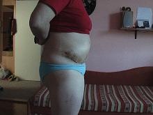 vložila jsem foto jizvy jsem hodně oteklá, jizva je teda zatím zalepená a jednu fotečku v oblečení, tam je krásně vidět úbytek těch boků až k lopatkám a najednou nahoře se rozšiřuju tam mi lipošku nedělal, objednala jsem se v srpnu k janečkovi at´ mě vysaje ten vršek , abych byla souměrnější.