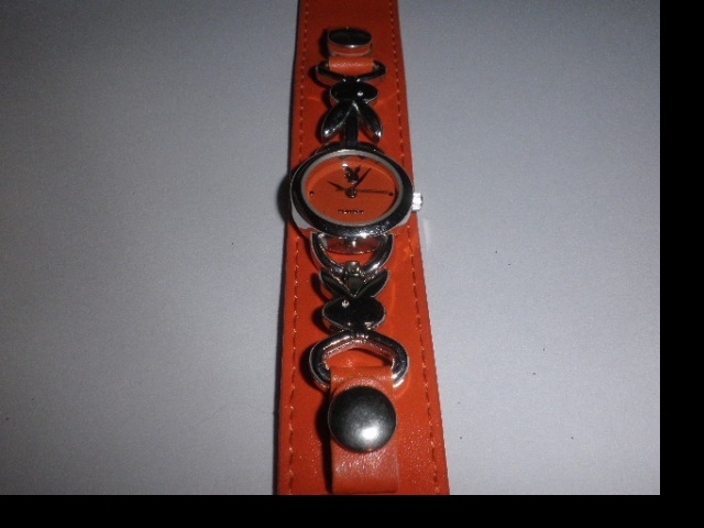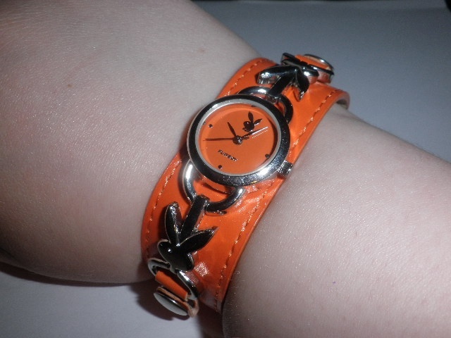 Krásné, nenošené hodinky s motivem Playboy, v barvě svěží oranžové