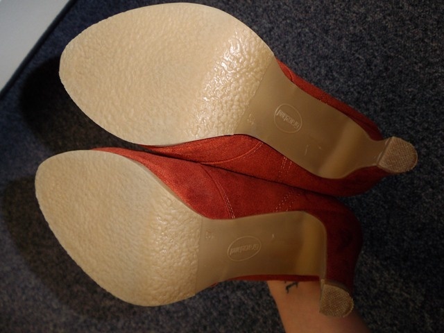 Nabízím k prodeji jednou obuté oranžové botky značky Graceland. Pošta 59 Kč. Jsou jako nové. Na mě jsou bohužel moc vysoké a nevydržím v nich dlouho.
