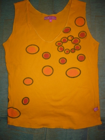 Prodám oranžové tílko v růžovými kolečky. Vel. M.