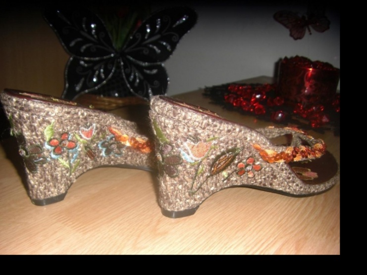 Krásné, originální, oranžové, flitrové žabky na klínku. Moc pohodlné. Jsou jak nové, byly použity jen jednou. Podpatek i podrážka jsou jak nové, netknuté. Klínek má 8 cm a je barevně vyšívaný nití a korálky. Velikost je 37, řekla bych že by byly i na nohu 36 a 36,5. (Já mám 37 a jsou mi tak akorát) Cena 129Kč + 50Kč pošta.