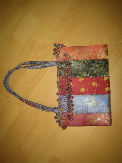 Zcela nová kabelka. Přivezena z Thajska, ručně šita. Zdobí ji barevné korálky a květinové vzory, zapínání na magnetický knoflík. Rozměry: šířka- 27,5 cm a výška- 17,5 cm. Cena 390 Kč, plus poštovné.