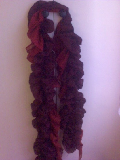prodám krásný vínovočervený šál jen jednou použitý. je krásně nařasený a prošitý.cena 150kč vč. pošty