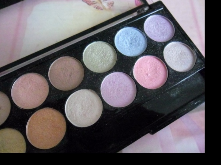Párkrát použitá paletka pastelových očních stínů.