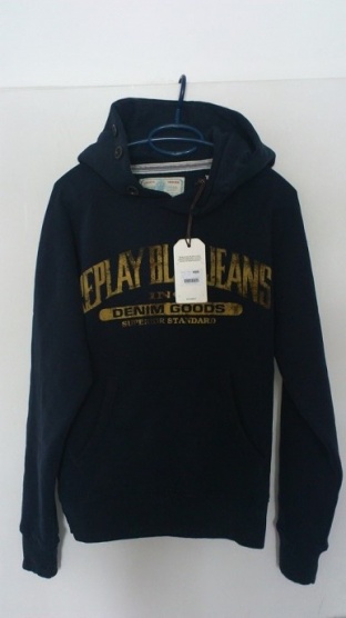 Moderná mikina značky Replay,je nová vratene ceduliek zle zvolená velkost vpredu vrecko. Hruď zdobí žltý nápis. Kapucňa vybavená gombíky na zapnutie. Spodný okraj mikiny s konce rukávov sú opatrené pružným rebrovaným lemom.