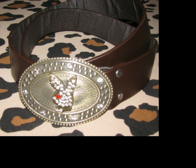 Pásek Playboy s kamínky. Opasek má hnědou barvu.
