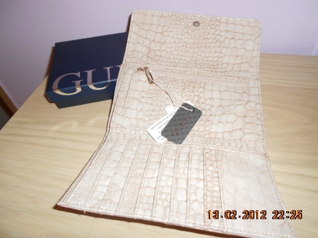 0Prodám úplně novou peněženku Guess, barva slonová kost, vepředu zlatý nápis Guess. Moc pěkná a originální, ještě s cedulkami. Rozměry 19x11cm.