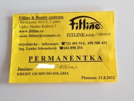 Holky prodám permanentku do solária, je do studia Fitline v Hradci Králové. Solárium je vertikální, turbo. Permanentka je přenosná, pro ženy.