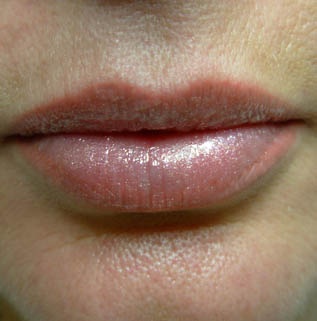 Mám svoje rty hodně světlé, takže o to víc je ten kontrast znát - a hlavně mám svoje rty hodně veliké, takže teď s tou linkou v obličeji šíleně dominují. Odstín jsme vybrali druhý nejsvětlejší (první byl natural, ale ten by nebyl prý ve výsledku vůbec vidět).