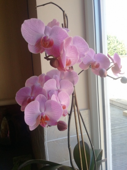 Ahoj , já ji mám na okně v kuchyni , kde na ní svítí sluníčko , zalévám tak 1 až 2x týdně velmi málo , někdy i 3x ale minimálně, když jsem si ji koupila měla asi 8květů , pak mi to odpadalo , a vyrostly mi celé nové větvičky a momentálně mám 9květů a ještě 5 pupenů Daří se jí moc dobře . \nechala jsem ji v tom stejném květináči ve kterém jsem ji koupila , tak nevím Nějak se o ní nestarám a kvete mi nádherně hodím fotku