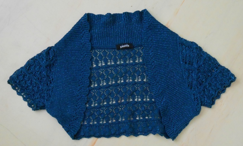 Prodám v podstatě nové bolerko z Pimkie. Kupováno za účelem jedné akce, kde jsem ho měla tak 2 hodiny na sobě, takže absolutně top stav. Bolerko je dírkované s kraťoučkými rukávky, takže možné nosit v létě jak přes tílko tak přes tričko. Vhodné i do společnosti.