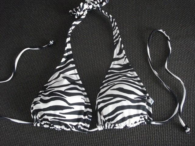 Krásné úplně nové plavky H&M v černobílé kombinaci. Nemají už sice cedulku ale já je neměla ani jednou na sobě. Velikost podprsenky je 38 ale sedne na A i B má vystužené košíčky. Spodní díl je ve velikost 34, ale po stranách má šňůrečky, tudíž se dají upravit podle potřeby.