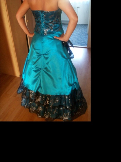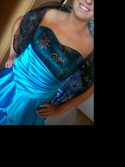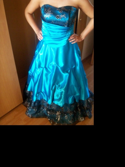Prodám modré plesové šaty s obručí. Opravdu jak nové. Jednou nošené. Velikost 44, ale dá se i na velikost 40. Cena 850,- včetně pošty