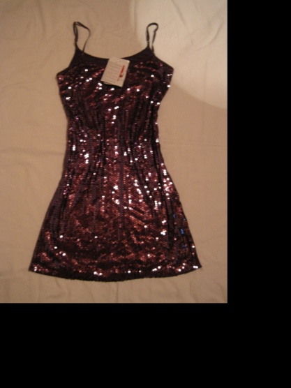 Prodám nové šaty zdobené flitry. Vysoce moderní. Barva fialová. Poštovné a balné 60 Kč.