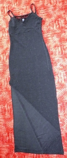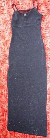 Prodám nikdy nevzaté plesové šaty, materiál elastický se stříbrnou nitkou, oblečené velmi pěkné, případně dodám foto na postavě. Velikost uvedena S,ale jsou velmi pružné,takže bych řekla, že mohou být až na menší M, tedy XS-M. Pěkné dlouhé rozparky po stranách. Vše ostatní viz foto.Barva sytě černá,blesk zkresluje.